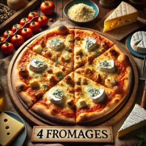 Sauce tomate, fromage, gorgonzola, chèvre, bleu d’auvergne