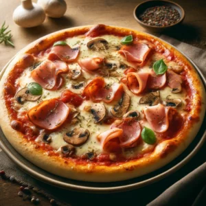 Sauce tomate, fromage, jambon, champignons,artichauts, olives