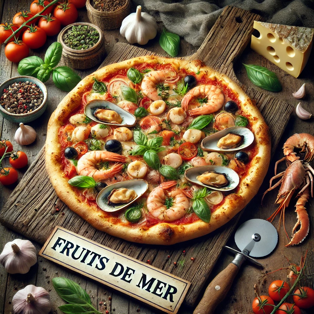Sauce tomate, fromage, fruits de mer , ail, persil