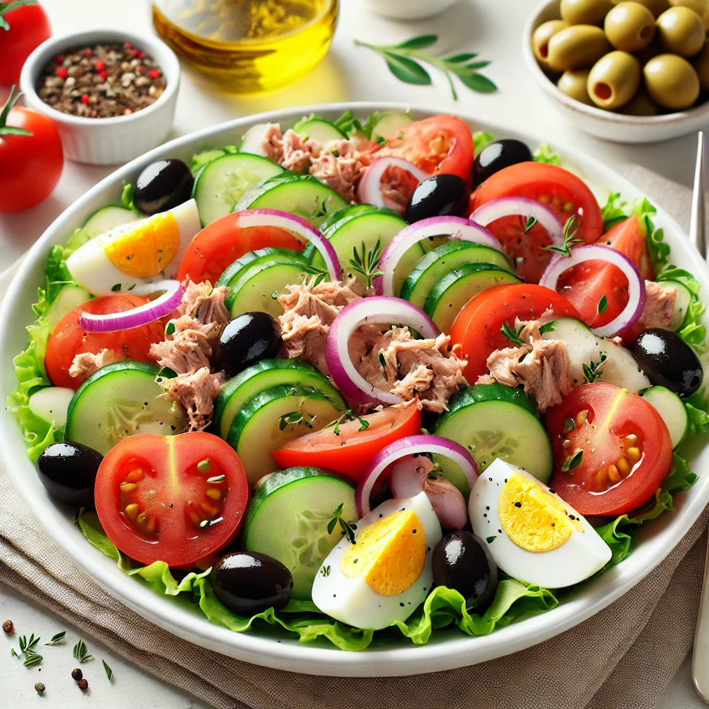 Carotte, concombre, betterave, roquette, œuf dur,sauce vinaigrette